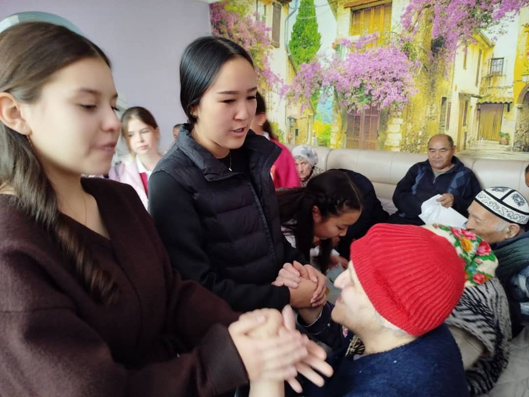 Уже стало доброй традицией в школе «Ак — Бата», проведение акции Добра. Благодаря совместным усилиям детей, родителей, учителей и координаторов 19 ноября была организована поездка в Кеминский дом пожилых людей «Луч солнца». Руководство просило передать всем слова благодарности за оказанную помощь. Техника посуда, термопот, чайники, пледы, тапочки, носки, фрукты, сладости  были так необходимы. Татьяна Михайловна пожелала всем детям и родителям здоровья, успехов, благополучия. Танцы, песни, общение , игра на музыкальных инструментах, подарочки для каждого принесли радость и тепло в будничные дни одиноких стариков. Это хорошая возможность строить мостики между старшим и младшим поколениями. Бог говорит, что тот кто отдаёт, не останется без награды. Спасибо всем за участие!