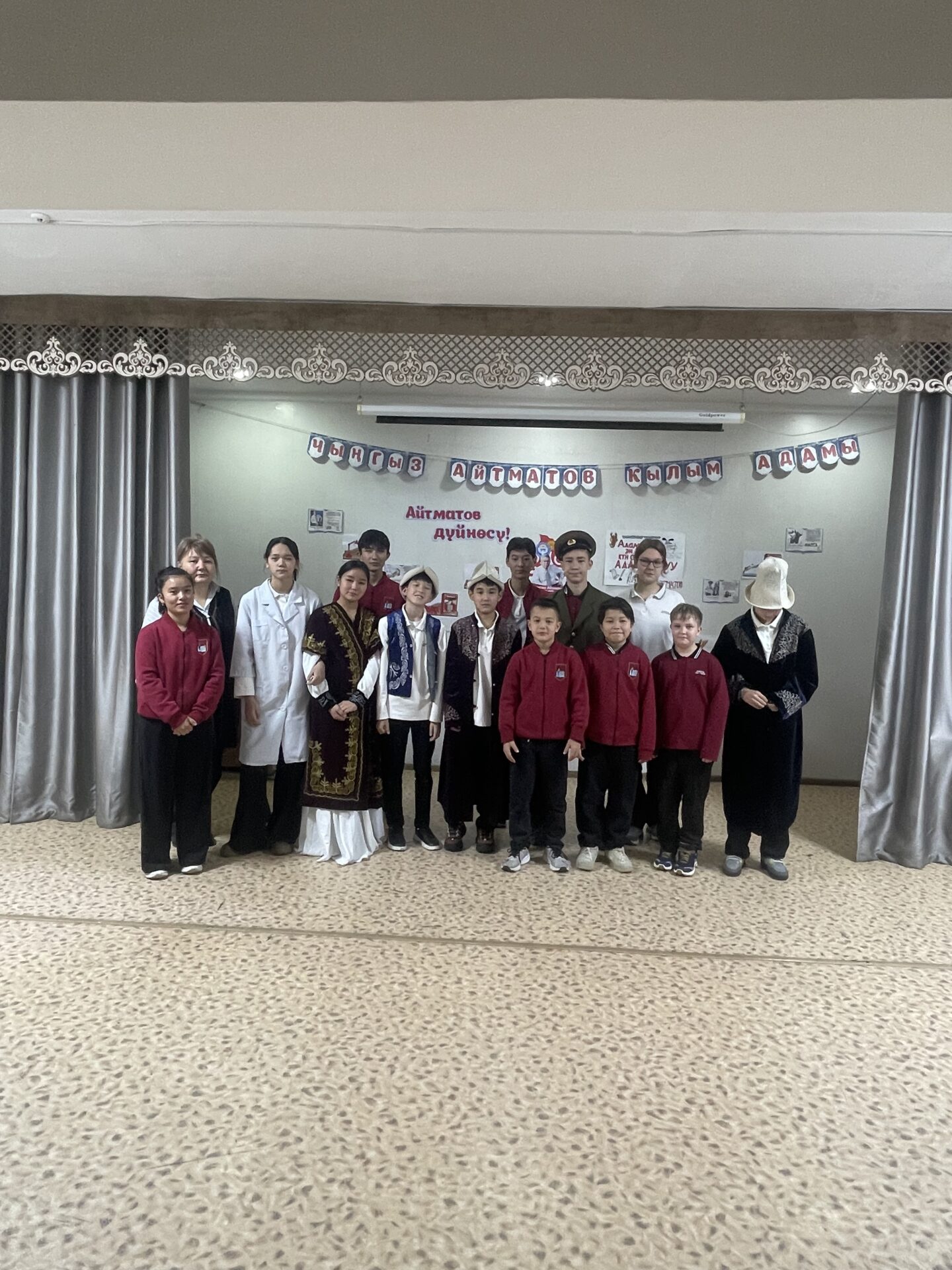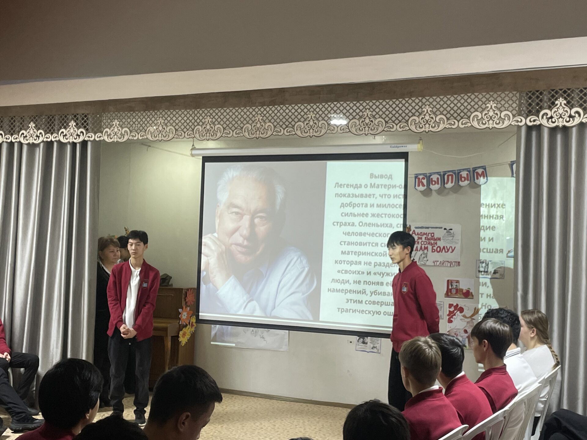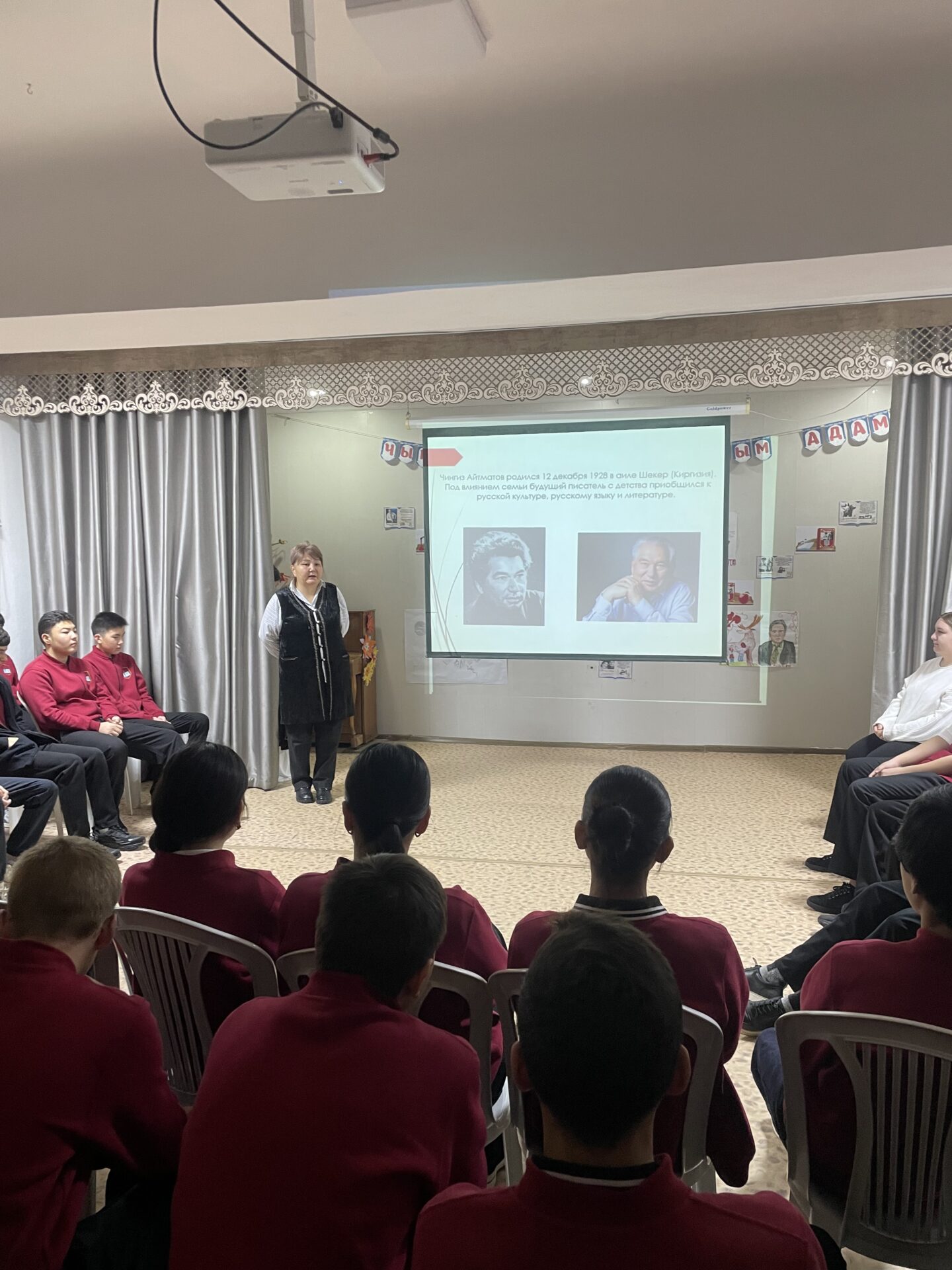 В школе прошла торжественная линейка, посвященная дню рождения великого кыргызского писателя Ч.Айтматова.